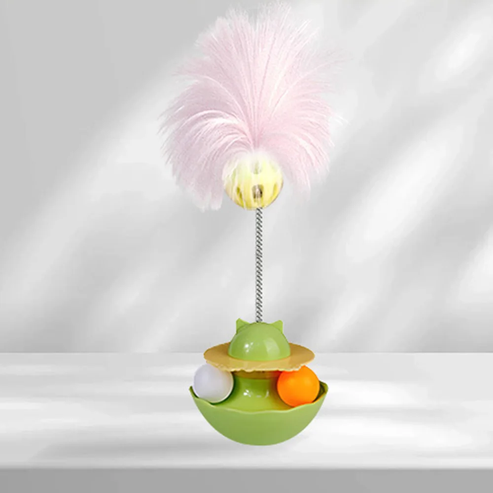 Cat Toy Tumbler Teaser Wand – Feather & Catnip Ball, Self-Playing Interactive Toy for Kittens, Molar Teeth Care,