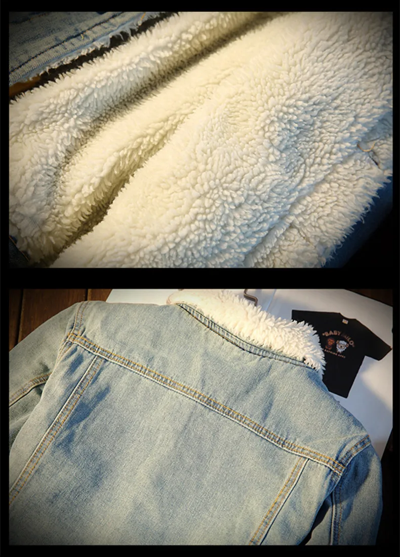Denim Jackets Men Coats Lamb Wool Thick Coat Turn Down Collar Full Sleeve Single Breasted Open Stitch Casual Jacket Winter