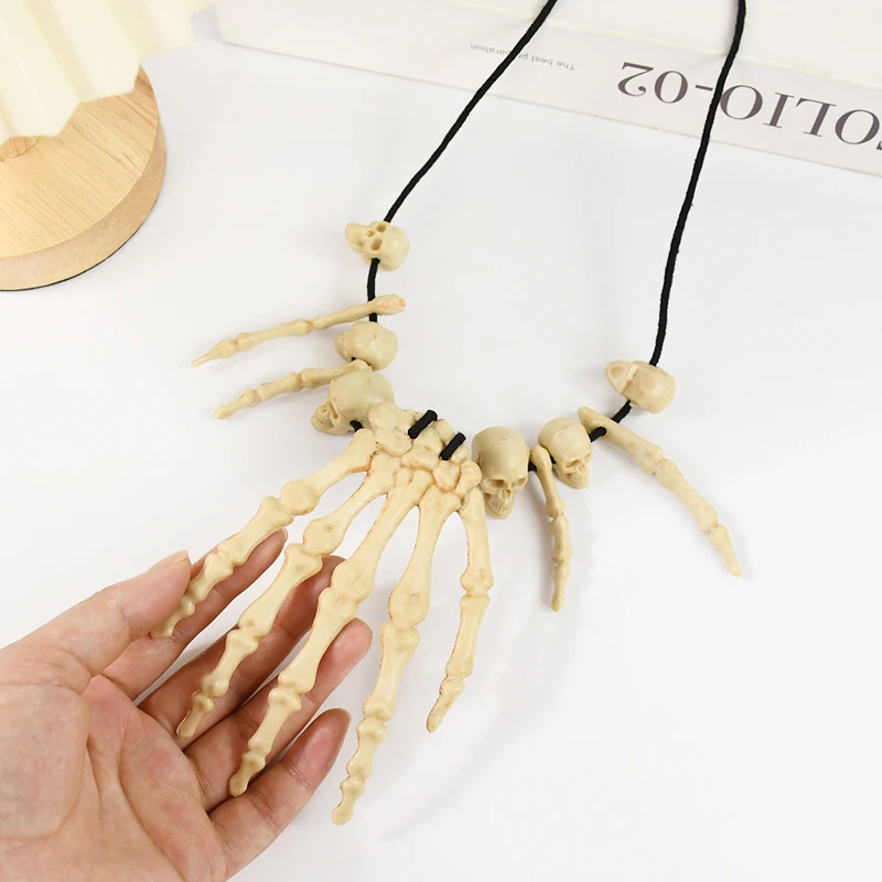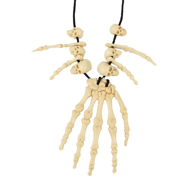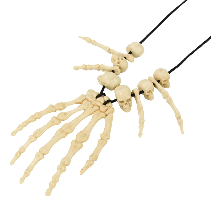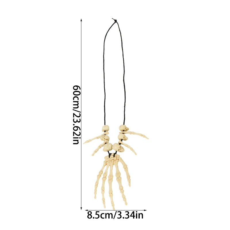 Halloween Decoration Skeleton Hand Bone Necklace Jewelry Costume Fancy Dress for Women Men Halloween Party Hanging Ornament Prop