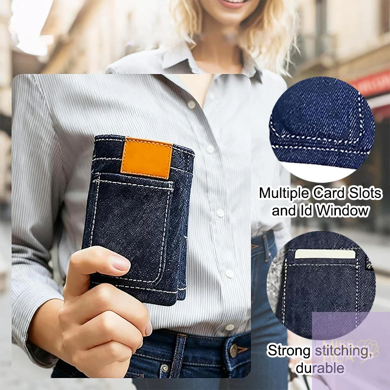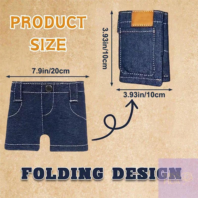 1,Fashionable Denim Wallet Design:Shaped like a mini pair of jeans, this clever denim wallet turns your money storage into a chic fashion statement. With detailed stitching and a playful pants-style look, it securely tucks away bills, coins, and cards in a fun, stylish way—a unique accessory that always stands out from the ordinary.2,Instant Conversation Starter:Take out this mini jeans wallet at checkout or while traveling, and watch the reactions! Its funny pocket pants design never fails to spark smiles, laughter, and curiosity, making it more than just a card holder—it’s a mini comedy show in your pocket that brings joy every time.3,Compact & Portable Mini Wallet:Slim, lightweight, and foldable, this mini jeans wallet foldable design fits easily into handbags, backpacks, or larger pockets, ideal for everyday carry or travel. Despite its compact size, it features multiple slots to hold essential cards, keys, or cash securely.4,Perfect Gift Idea:Looking for a quirky and memorable present? This foldable denim wallet makes a hilarious choice for birthdays, holidays, white elephant parties, or stocking stuffers. Practical yet playful, it’s a great way to surprise friends, family, or coworkers with something both useful and entertaining.5,Fun for All Ages:Whether you’re a teen, an adult who loves novelty, or simply young at heart, this denim wallet for women is guaranteed to bring a smile. A practical and compact card holder wrapped in a playful design, it’s a cheerful addition to anyone’s daily routine.Specification:7.9in x 3.93in/20cm x 10cmColor:Blue/BlackMaterial:FabricUsage:WalletPackage: 1 * WalletNote:1. Please note that the photo does not show actual size, please refer to Description for size details.2. Please allow differences due to manual measurement, thanks.3. Due to the difference between different monitors, the image may not reflect the actual color of the item.